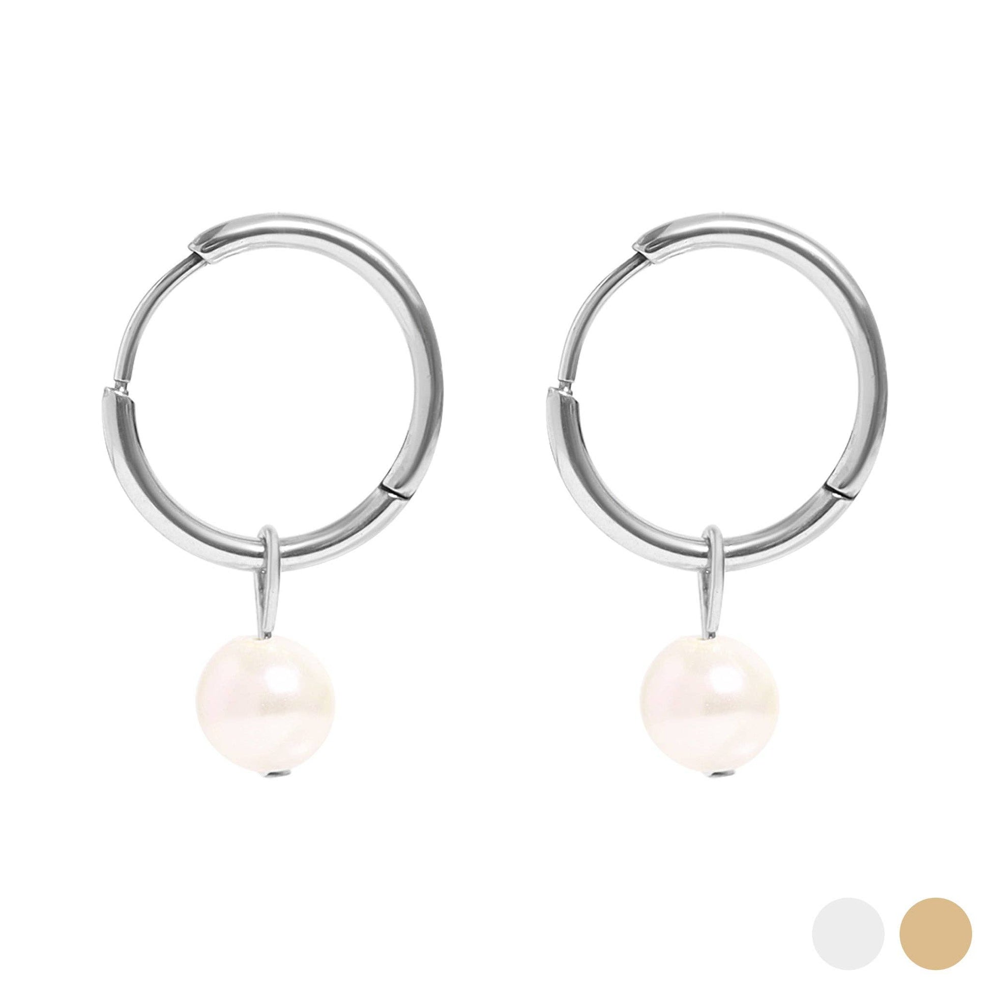 WJW 18K Gold PVD Stainless Steel Pearl Charm Huggie Hoop Earrings / ERJ0027