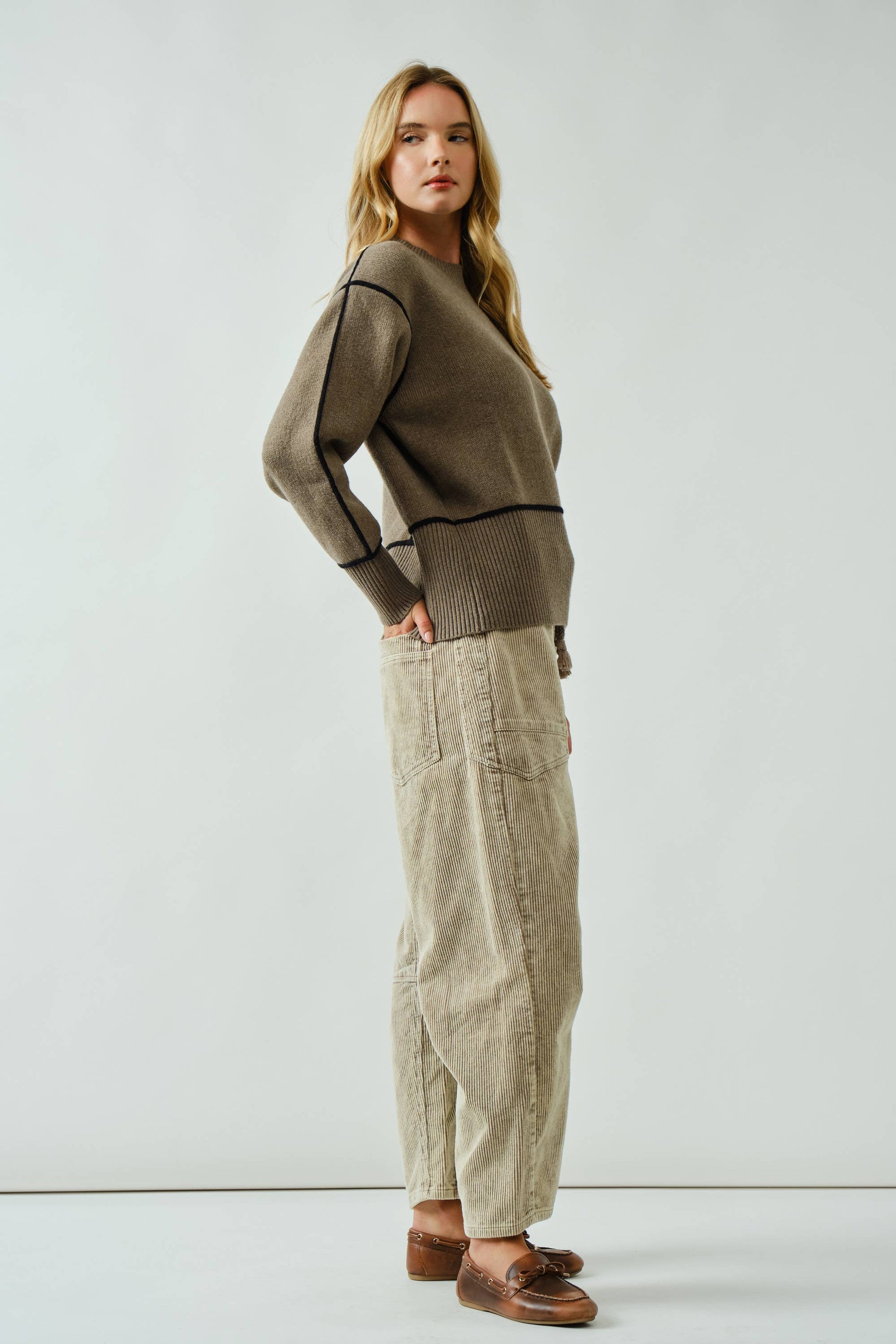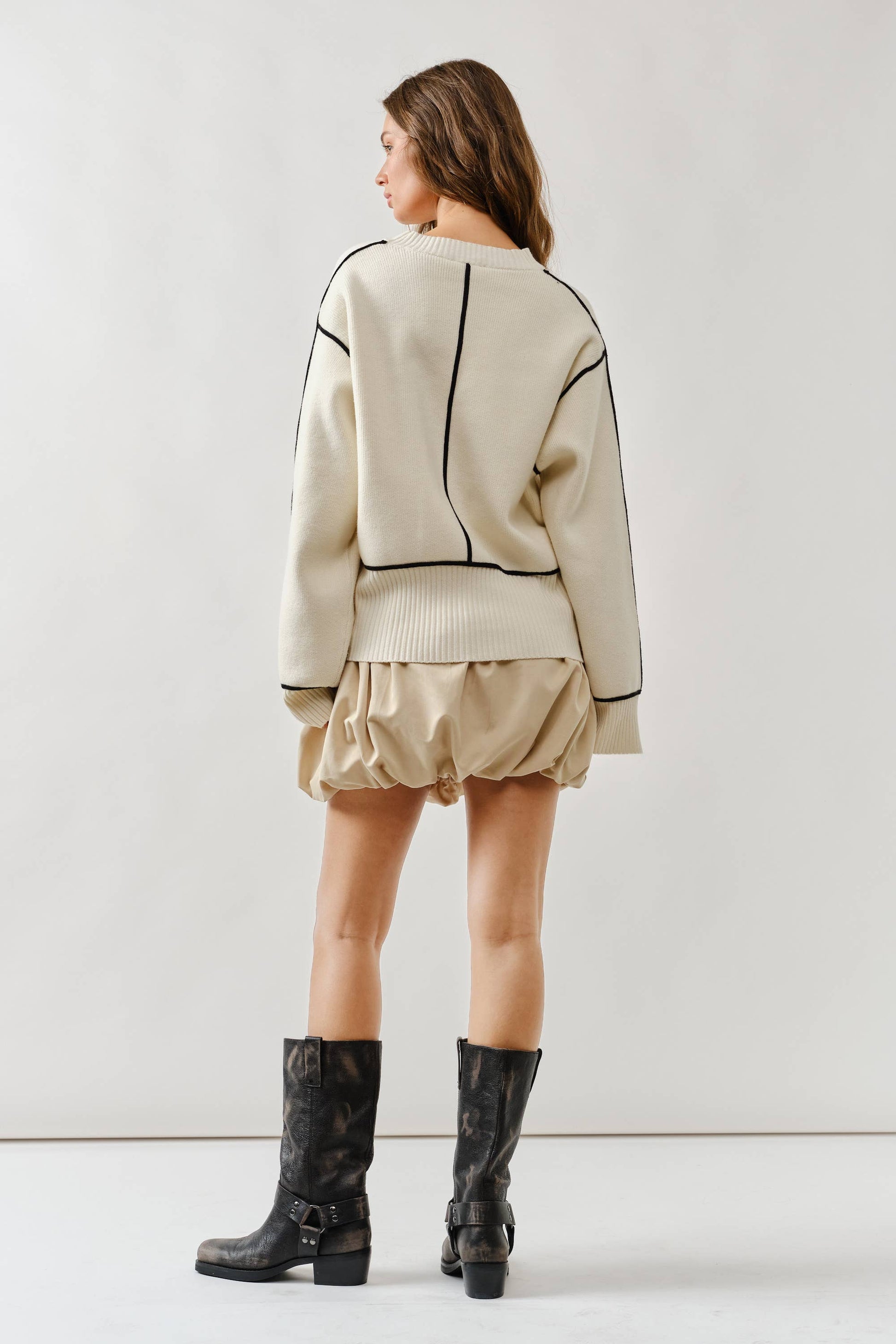 AARON & AMBER OVERSIZED FIT CONTRAST STITCHING SWEATER