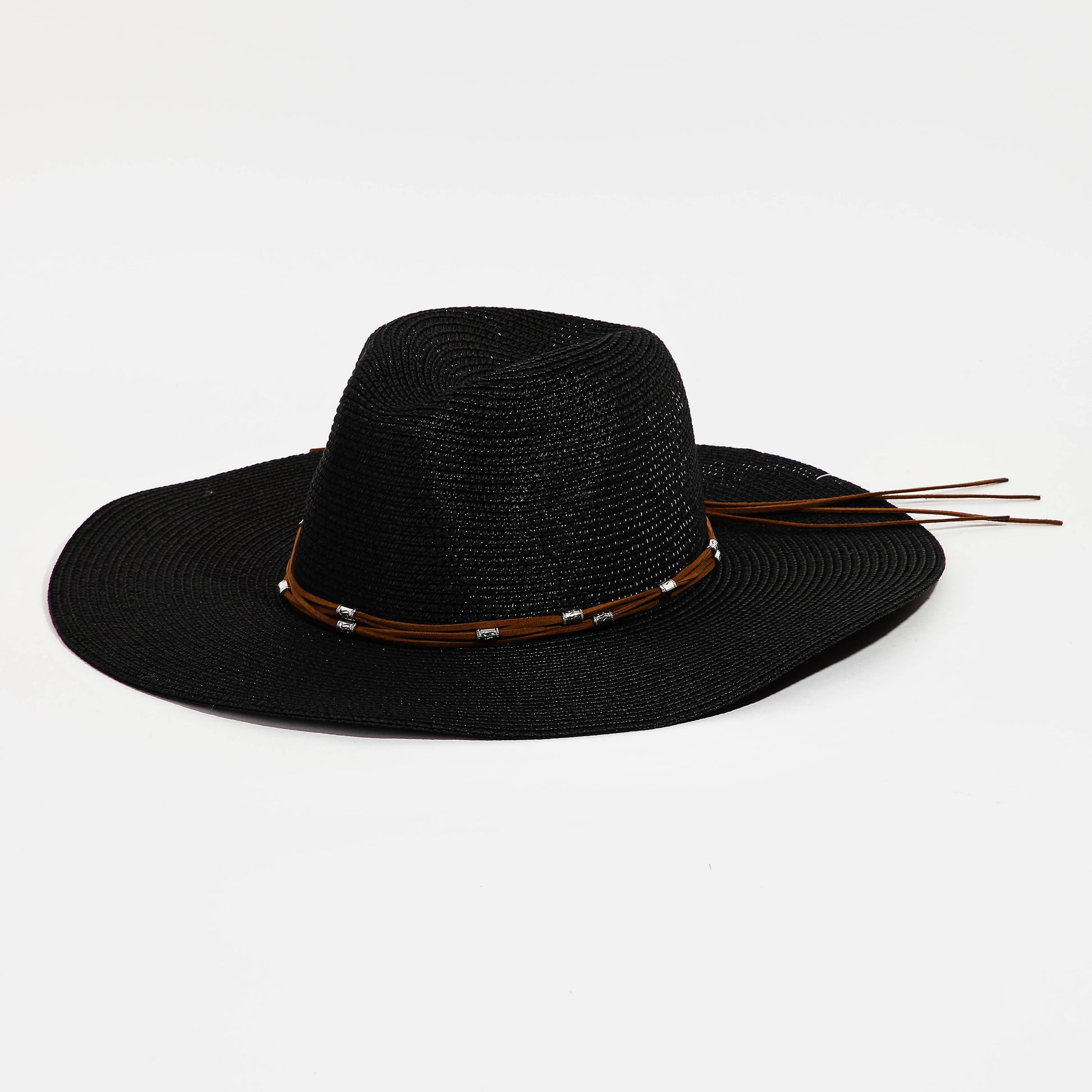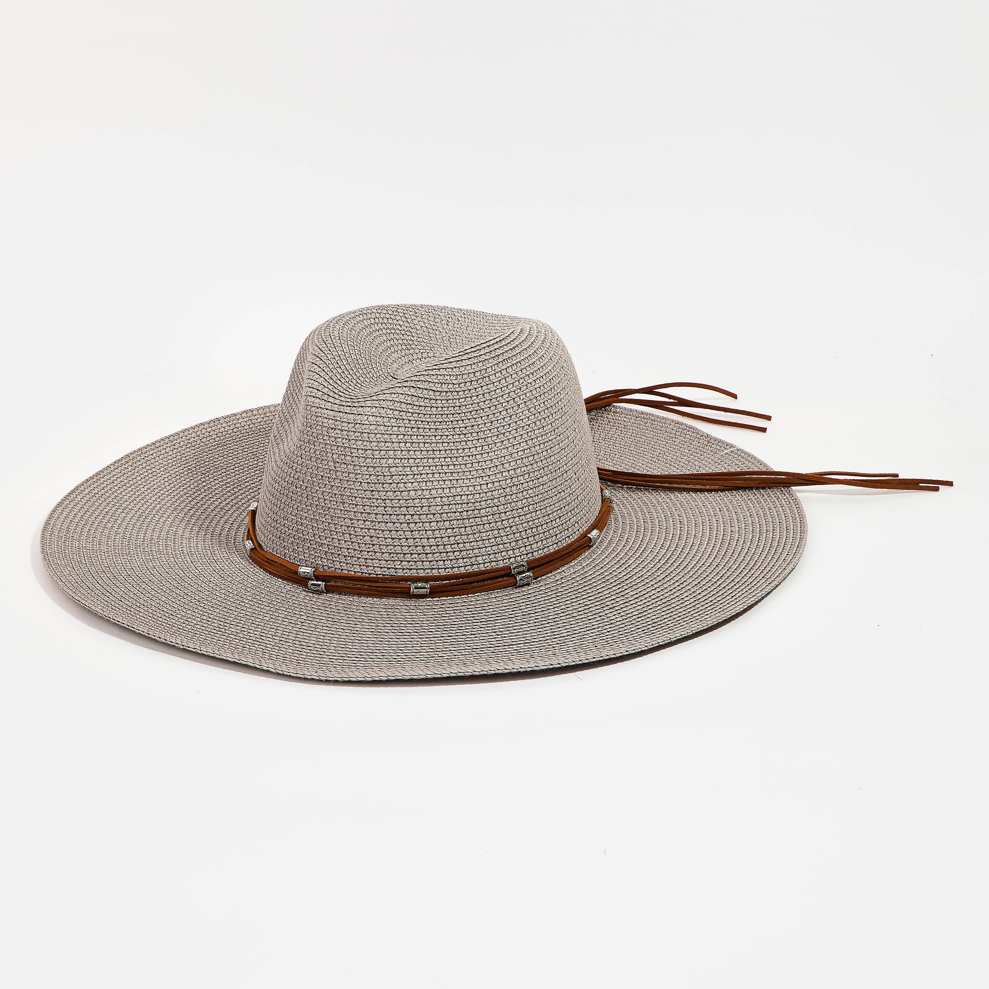 Beaded Leather Band Straw Hat
