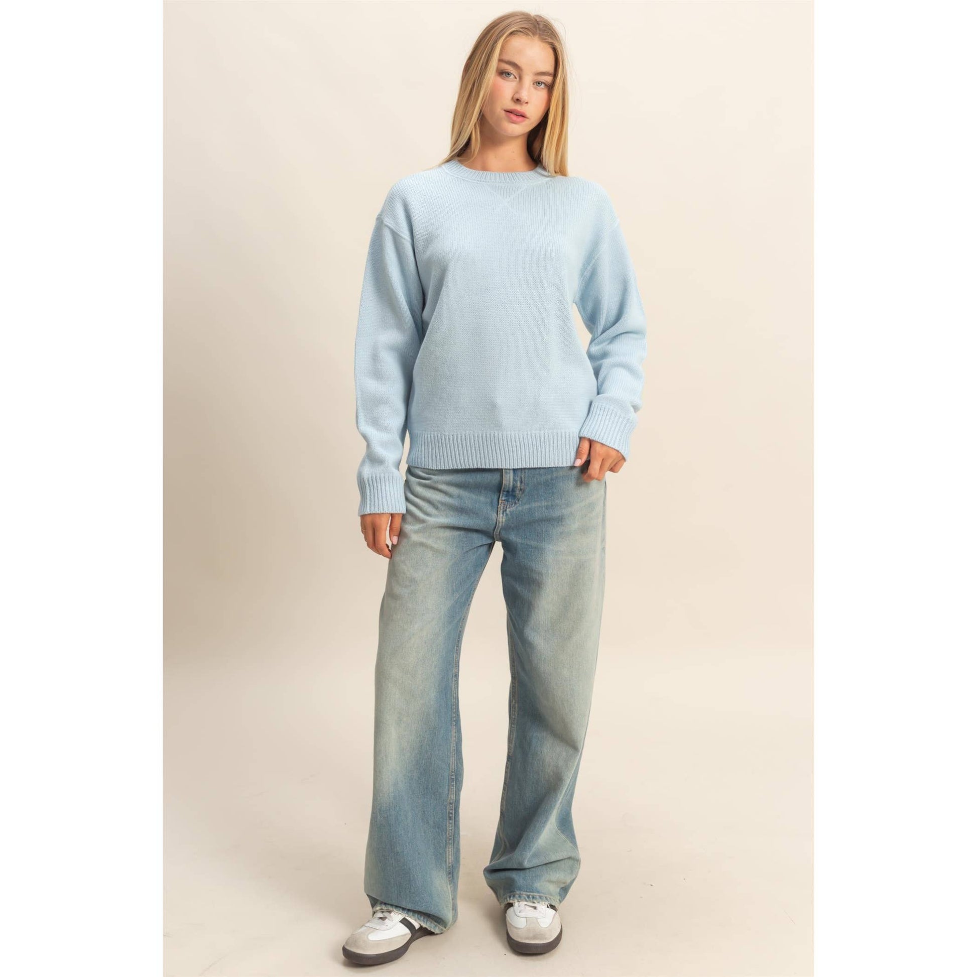 Embrace comfort with this timeless crew neck sweater. Its solid hue and ribbed trim highlight a classic silhouette, making it ideal for versatile styling. Perfect for layering during cooler months, this piece works seamlessly from a casual day out to a cozy evening in. Pair with denim jeans or layer over a collared shirt for a polished look.