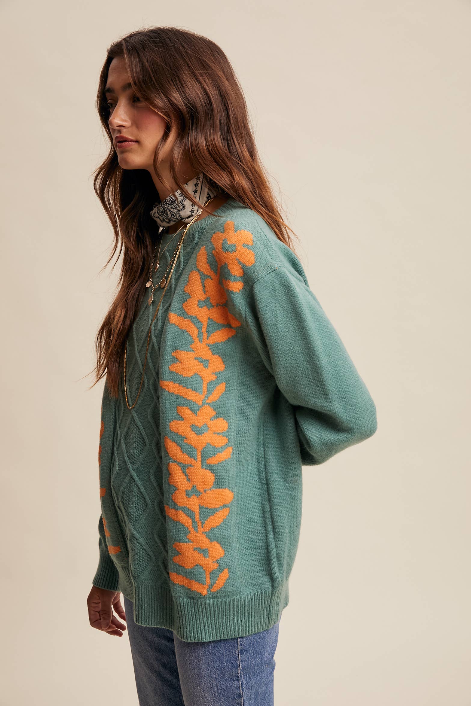 Floral Panel Cable Knit Sweater By Listicle