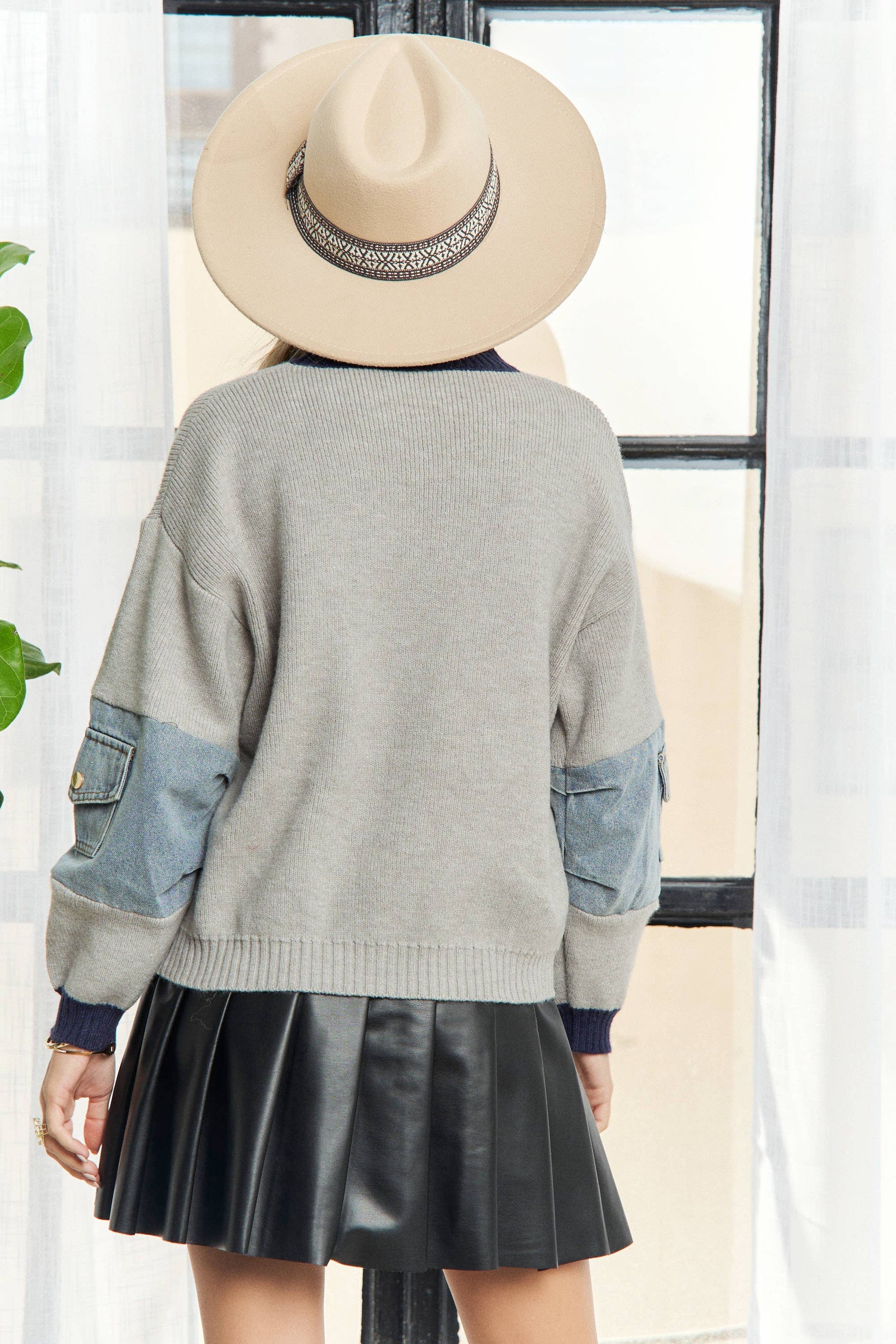 Adora LA KNIT SWEATER TOP WITH DENIM POCKETS